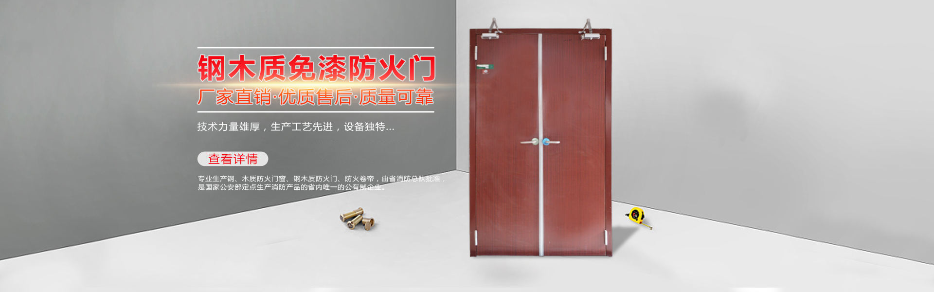 長沙防火門廠有限責任公司位于湖南省長沙市天心區新開鋪路124號,公司以防火門、窗、卷簾的制作和銷售為主營業務。 公司始建于六十年代,后因消防事業的需要,于一九八五年轉行專業生產鋼、木質防火門窗、鋼木質防火門、防火卷簾,由省消防總隊批準,是國家公安部定點生產消防產品的省內唯一的公有制企業。年生產能力三十萬平方米以上,有近二十年的消防系列門窗類生產經驗,現有專業技術人員五十多人,生產人員200多人,技術力量雄厚,生產工藝先進,設備獨特,在生產防火門、特級防火卷簾、防火窗等特種門窗產品上極具優勢,后因發展需求改制為長沙防火門廠有限責任公司。 新國標GB12955-2008執行以來公司成為湖南省第一家、全國第十家通過國家新版隔熱防火門產品生產資格的企業,2018年湖南第一家通過生產活動式隔熱防火窗產品生產資格的企業,公司專業生產鋼質、鋼木質、木質隔熱防火門,木質、鋼質固定式隔熱防火窗,鋼質活動式隔熱防火窗,特級鋼質防火卷簾、特級雙軌雙簾無機布基防火卷簾,其他材質隔熱防火門(不銹鋼防火門)等40多個系列140多本證,涵...